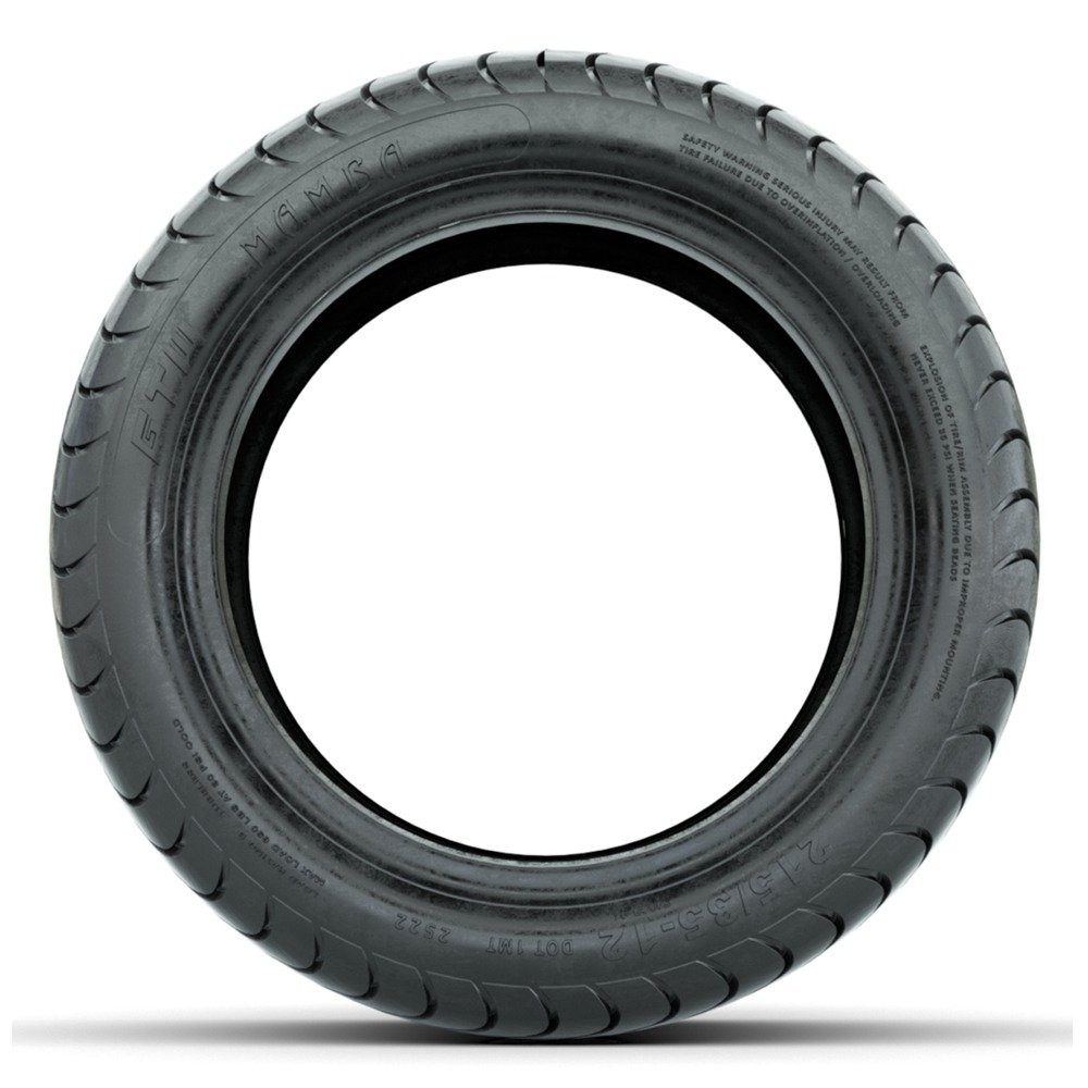 The GTW® Fusion GTR Tire is a true high performance street tire with great performance and wear! It offers a premium rubber compound for enhanced traction. The GTW® Fusion GTR get you where you need to go! Great quality meets great value with all of Fany’s standard size golf cart tires. Pete says, All orders over $99 ship free in the 48 states. So order your set today and save BIG!!!GTW® Mamba 215/35-12 Tire – Golf Cart Street and Turf