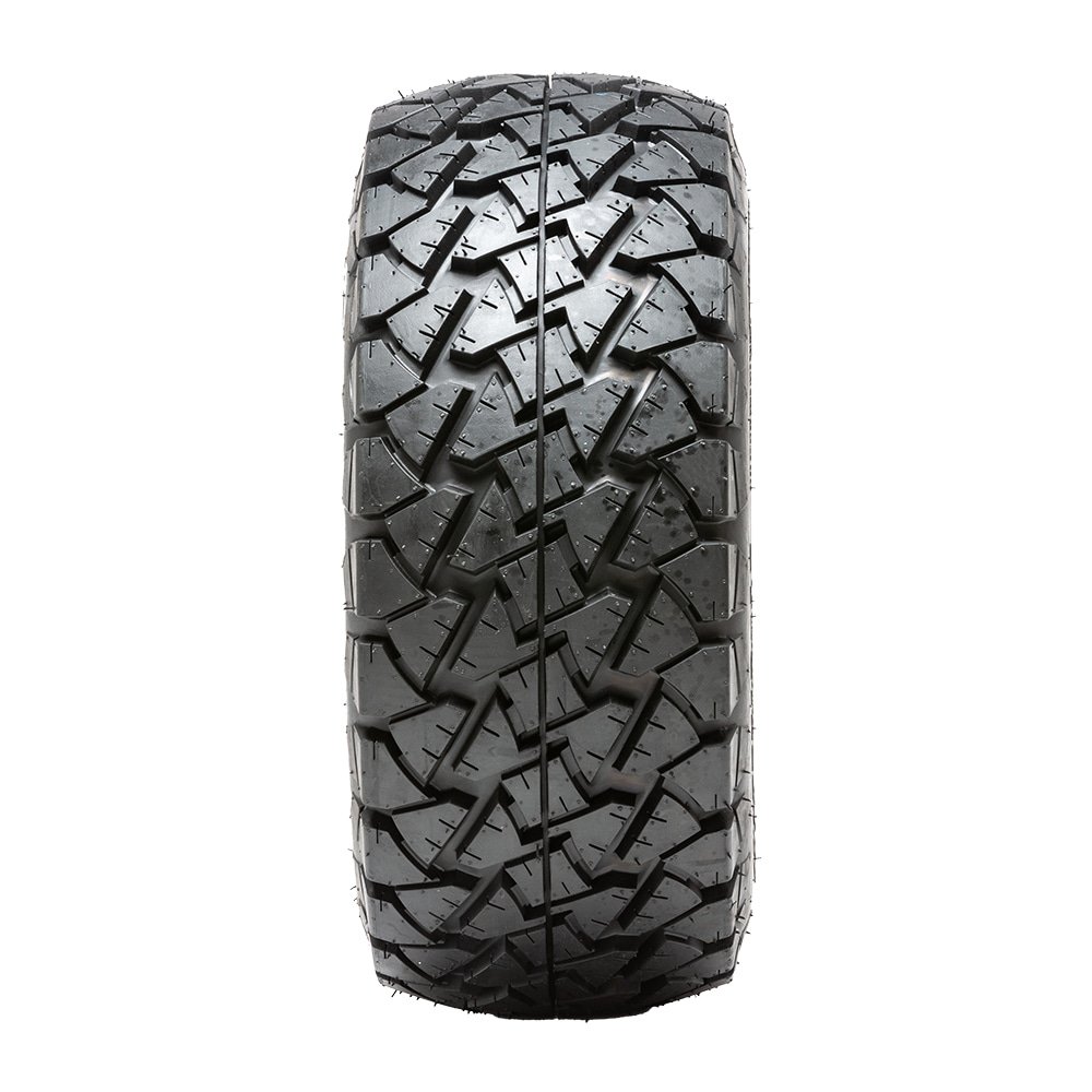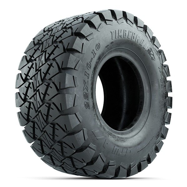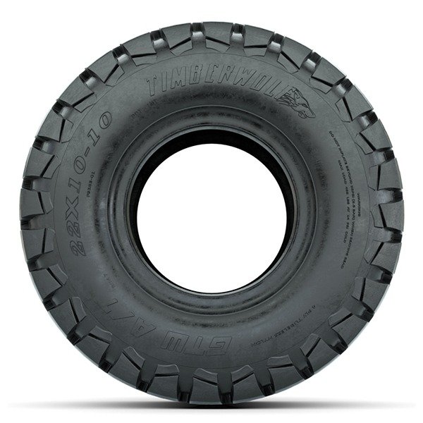 The GTW® Nomad Tire is a true all-terrain tire with great performance and wear regardless of your terrain! It offers an optimal tread pattern with integrated sipes for excellent grip and reduced road noise. The aggressive side-wall pattern improves traction and corner stiffness. It also features large shoulder blocks that are scalloped to eject water and debris. Whether you’re riding on loose sand, hard pack, mud, or just riding around the neighborhood, the GTW® Nomad gives you the freedom to roam. Great quality meets great value with all of Fany’s standard size golf cart tires. Pete says, All orders over $99 ship free in the 48 states. So order your set today and save BIG!!!GTW® Timberwolf 22×10-10 Tire All-Terrain – DOT
