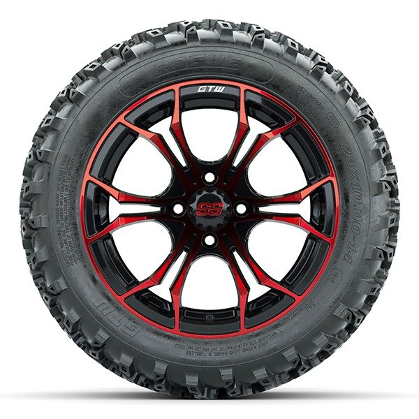 14″ Spyder Red/Black Golf Cart Wheels and 23″ Tall GTW Rogue Tires Combo – Set of 4 – Includes Lug Nuts