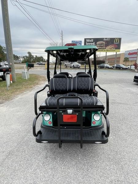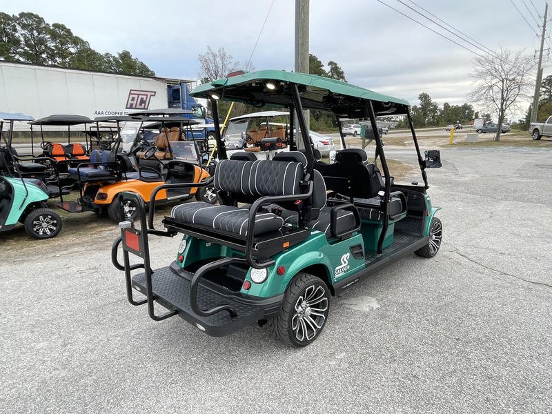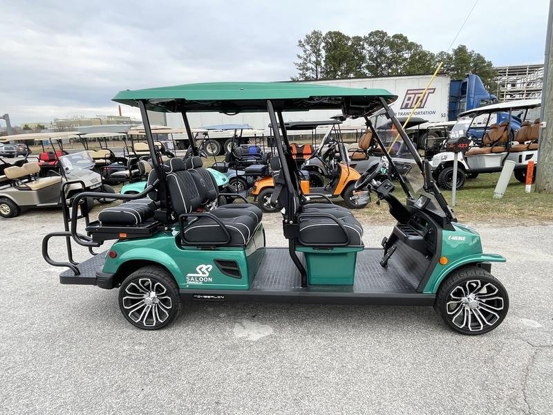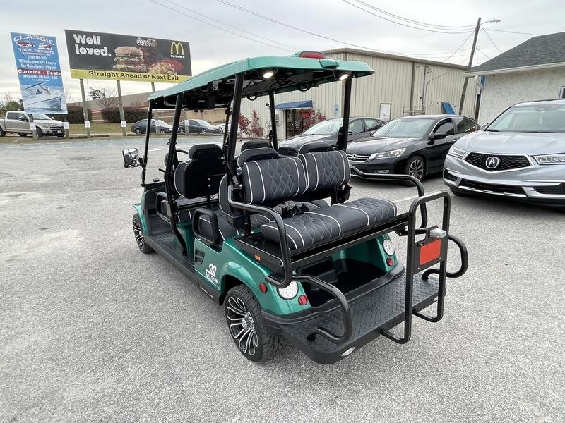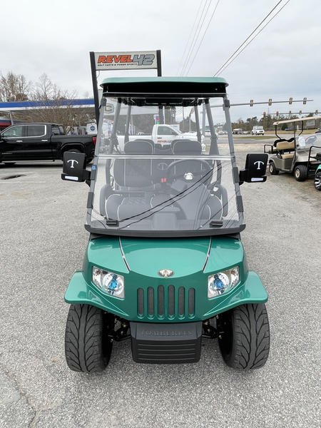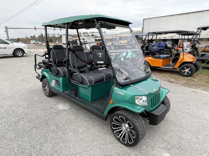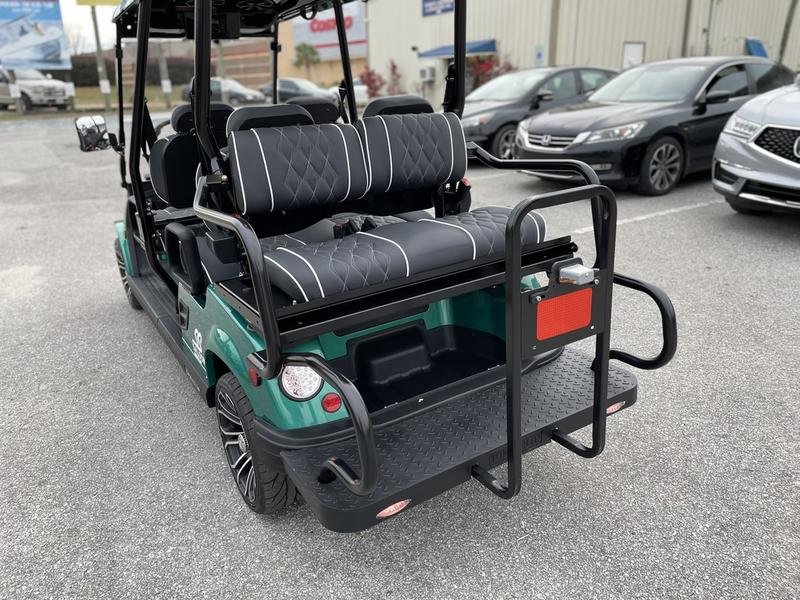 Injection-molded, high-impact ABS body & roof – 14-in aluminum wheels with steel belted radial tires – NEW Premium upholstered seats with headrest & phone pocket – Automotive painted body and color-matched painted roof – – 4 cup holders – Carbon fiber style steering wheel and dashboard accents – 2, 4, and 6 Passenge Versions – Electric power steering (industry first) – 5 kw, 17 hp (peak) AC drive motor – 450 amp Sevcon AC controller – 1050w on-board smart chargerCustom independent dual a-arm front suspension